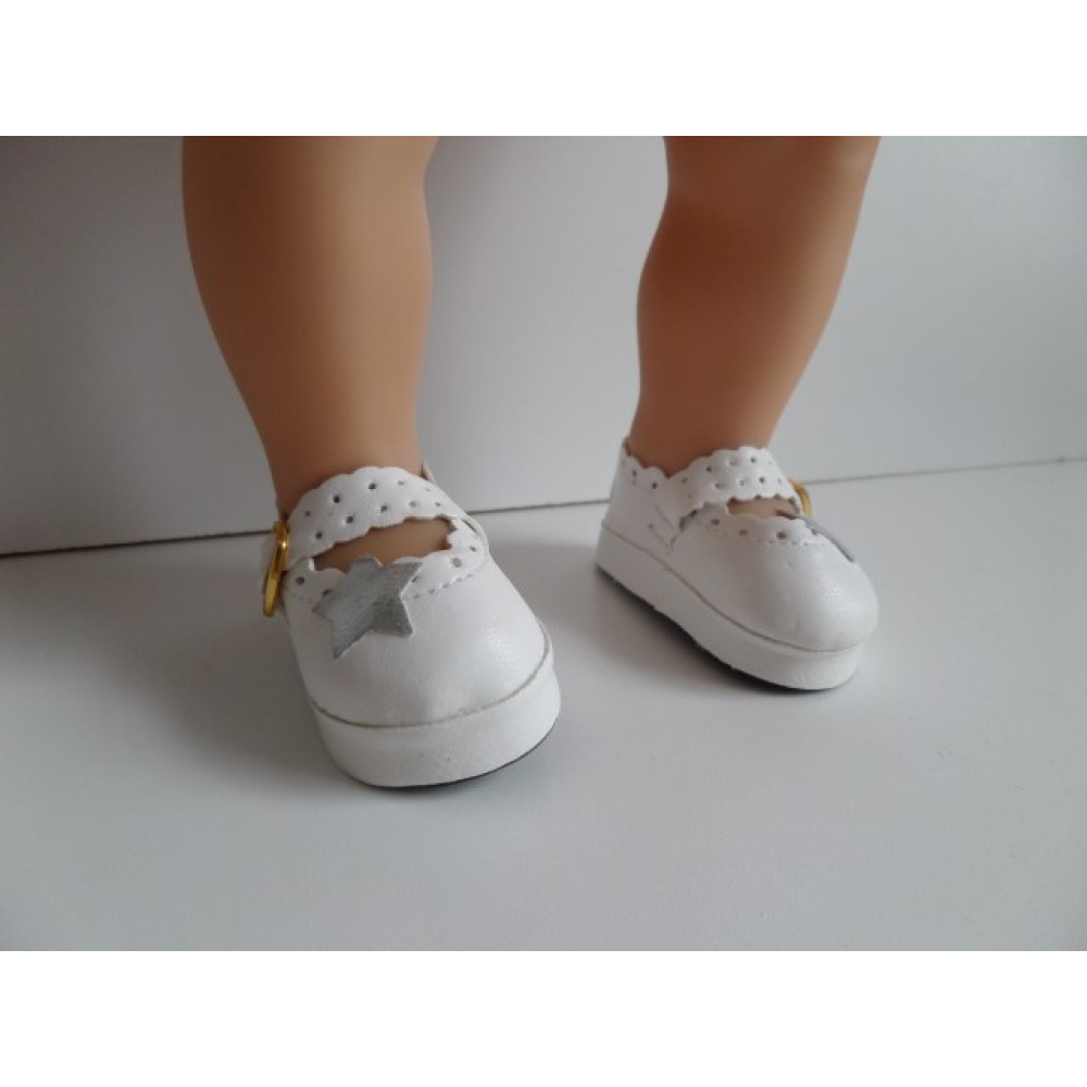 Bandschoen wit met ster voor 32 en 36 cm pop