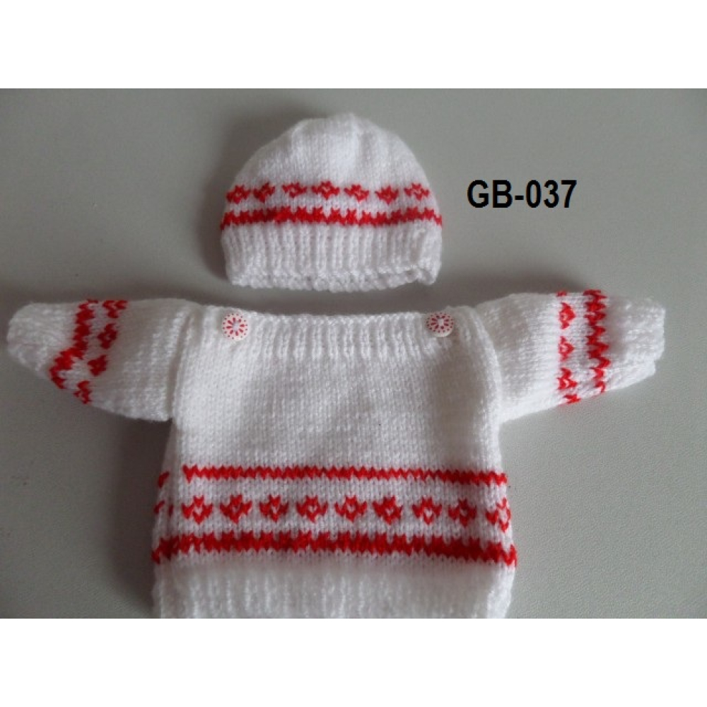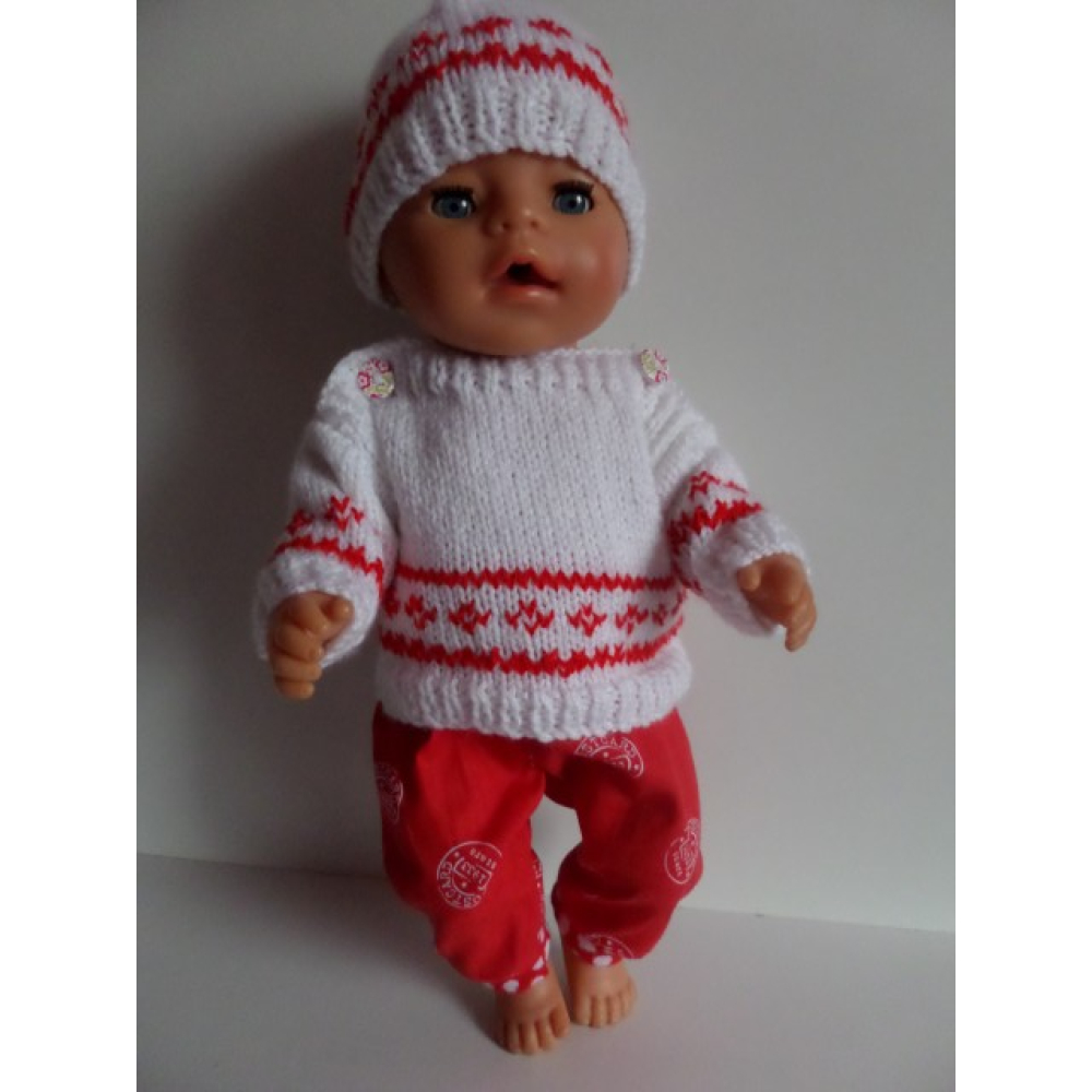 Trui met muts, wit met rode noorse patronen