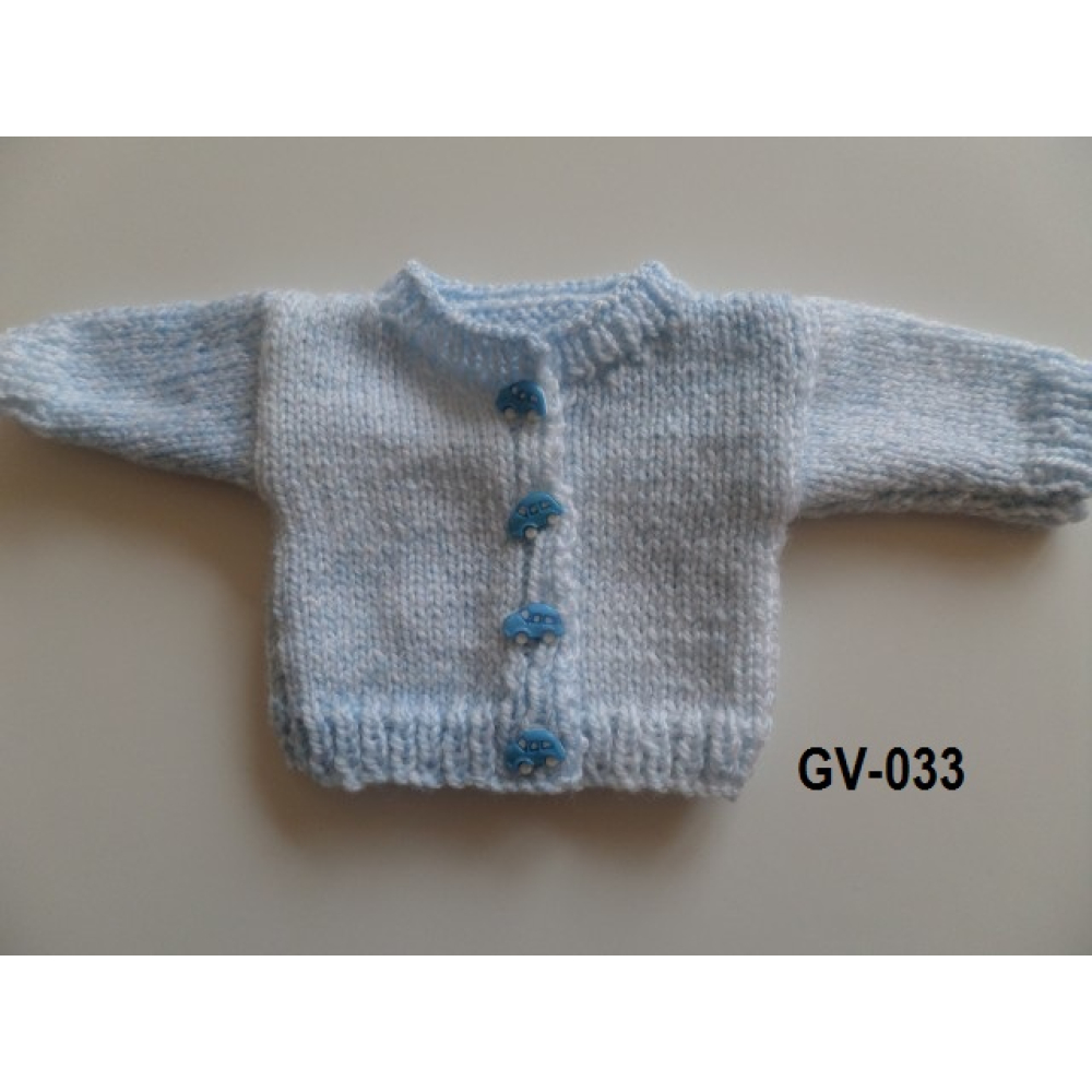 Gebreid vest lichtblauw melè met auto knoopjes