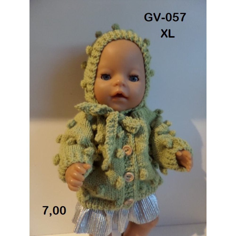 Gebreid vest met nopjes in groen met muts, valt ruim