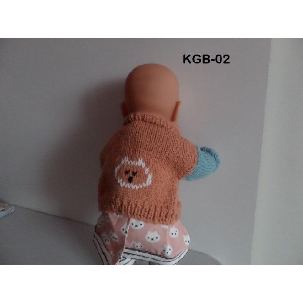Gebreid vestje zalm met poesje voor 36 cm pop