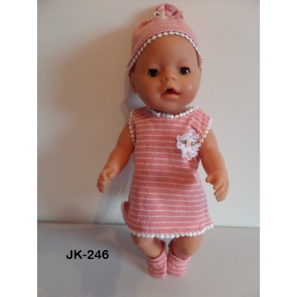 Gebreid zomerjurkje oudrose met mutsje en sokjes