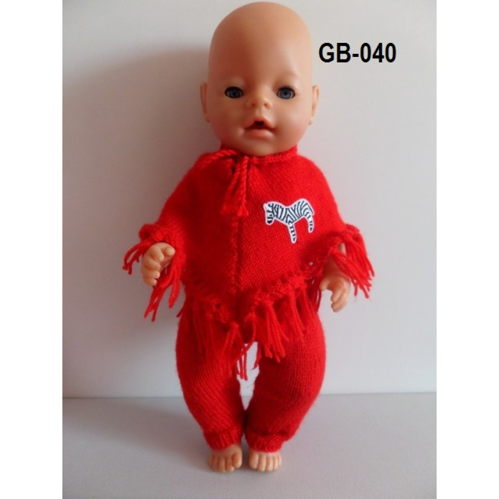 Gebreide poncho met lange broek,. rood met giraffe