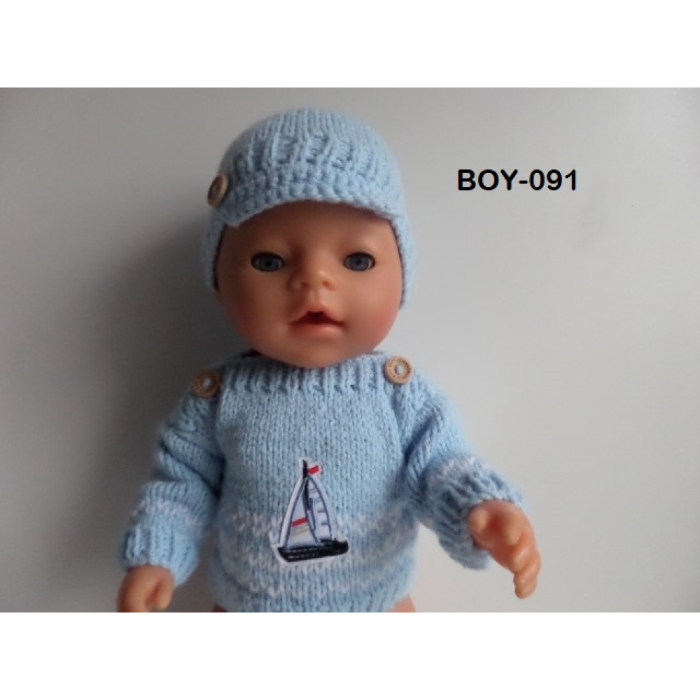 Gebreide trui met pet lichtblauw met bootje