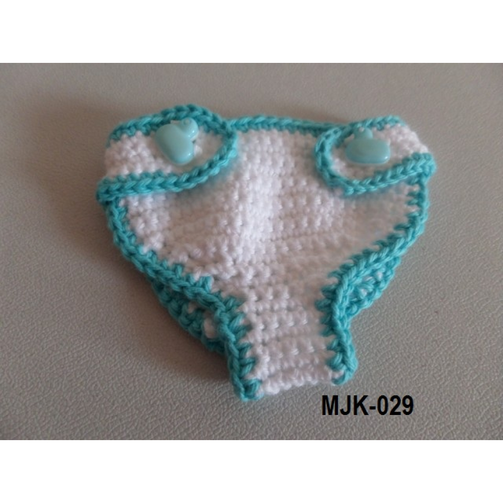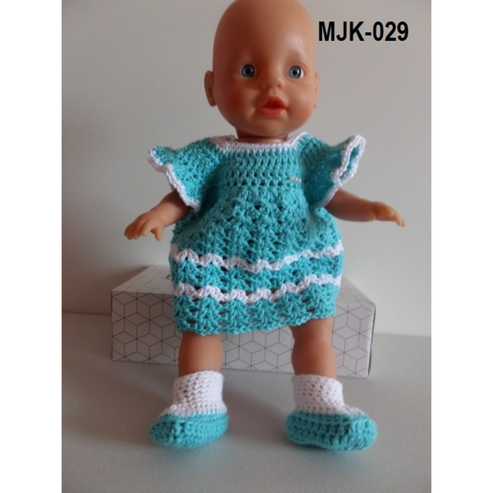 Gehaakte jurk, luier en laarsjes aqua