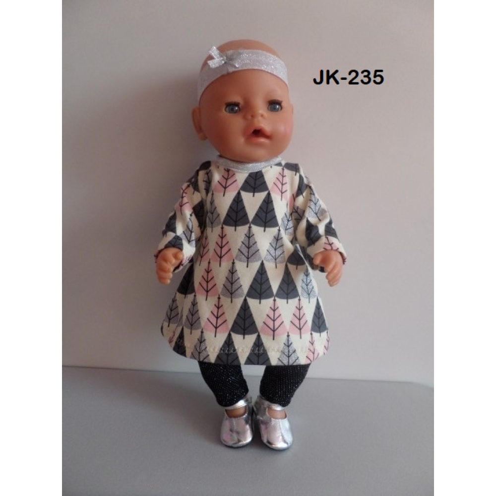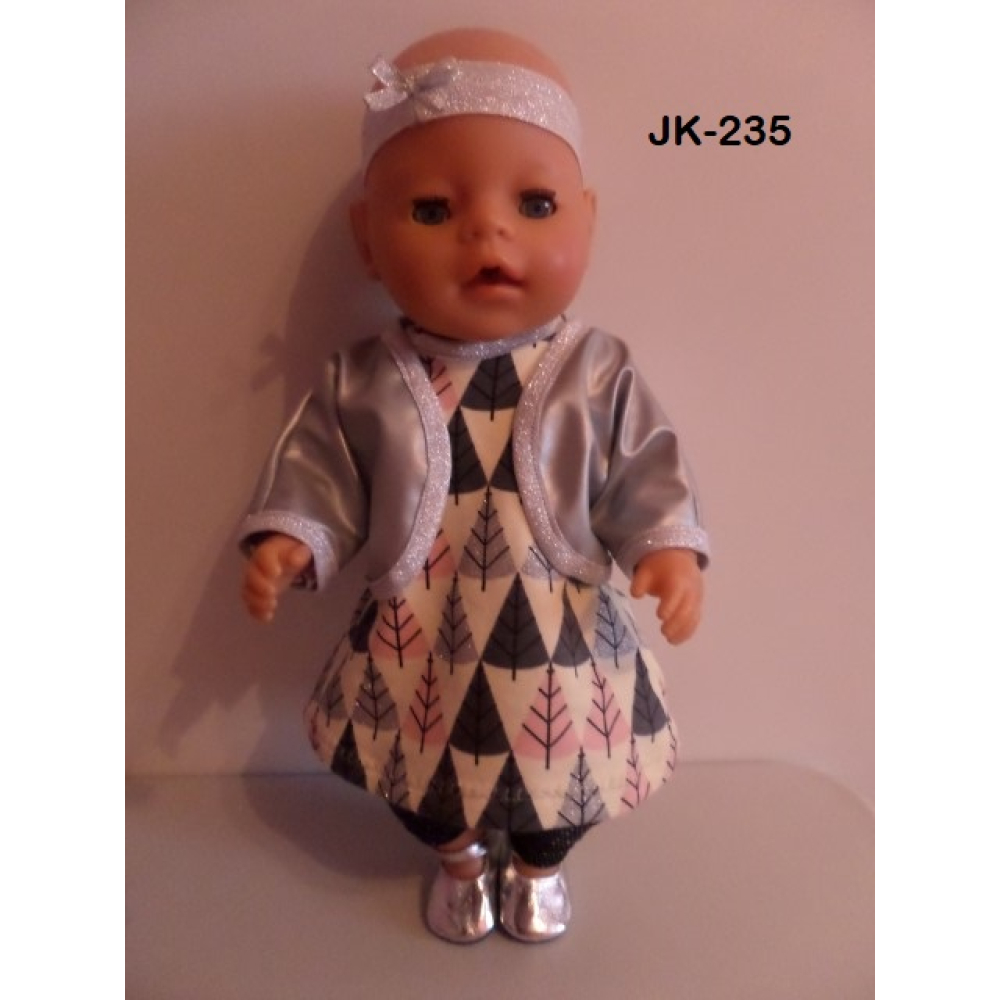 KerstJurk, met haarband, legging en leren jasje, zilver