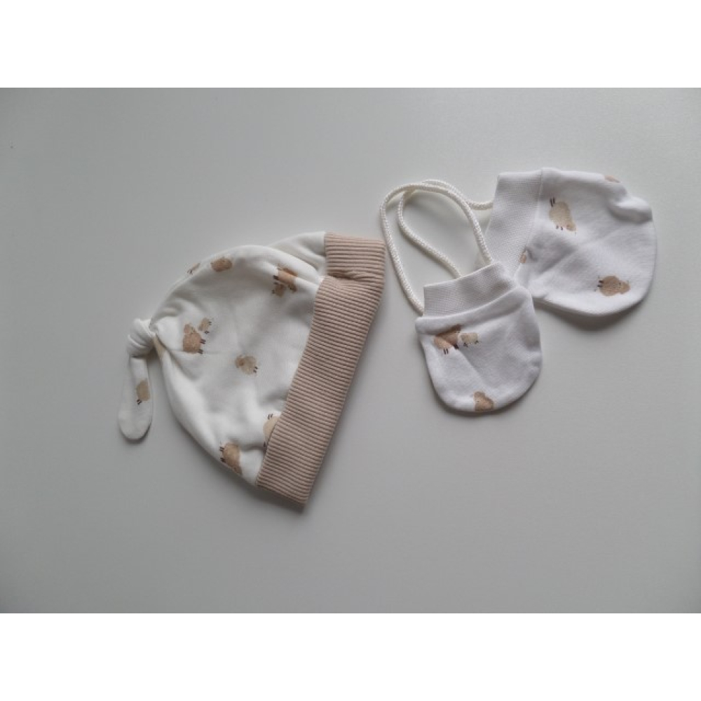 Muts met wanten zandkleur